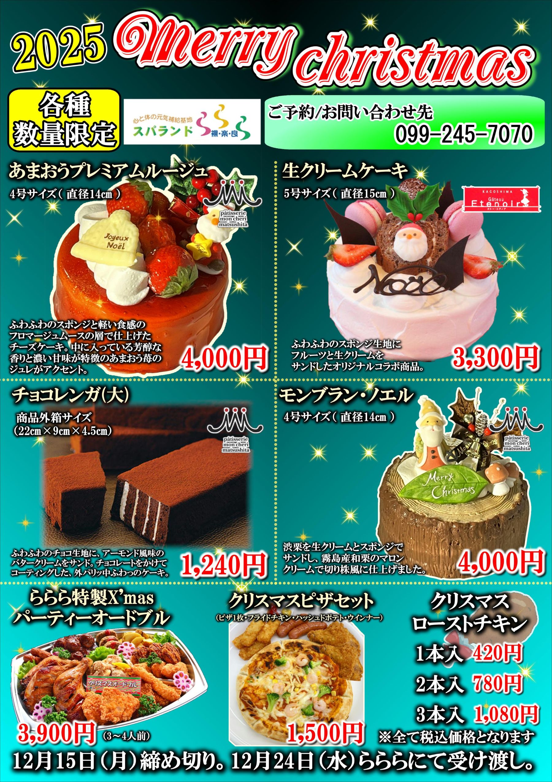 現在、スパランド裸・楽・良では、クリスマスケーキ等の予約受付中!!